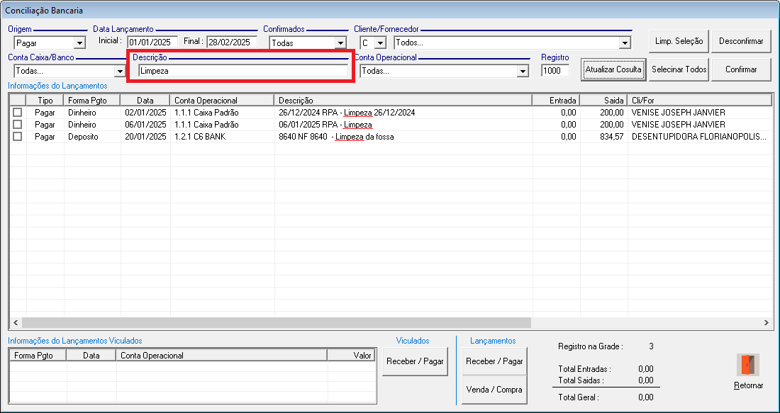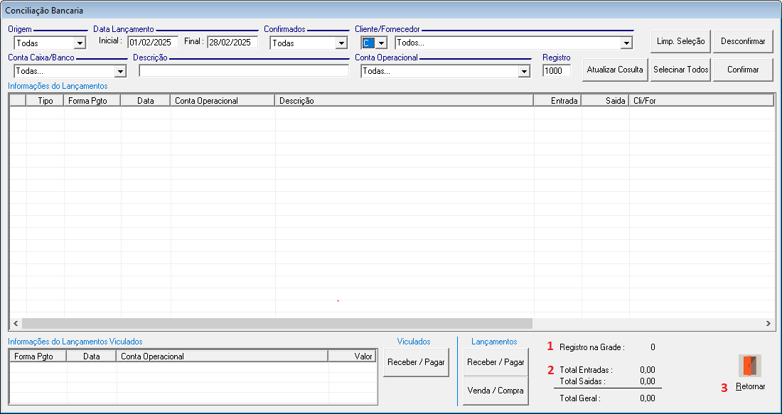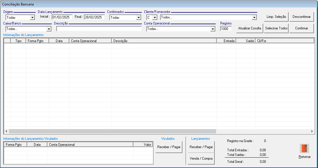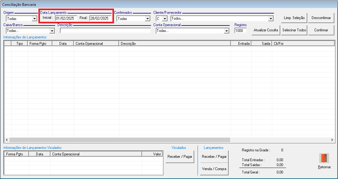 • Não Confirmados: Exibe apenas lançamentos Não Confirmados.