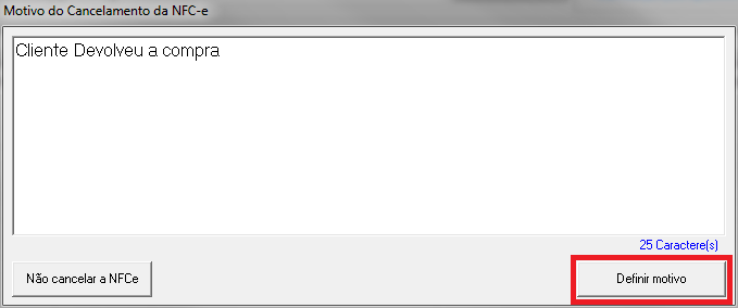 Após isso clicar no botão “Definir motivo” sua nota será ser devidamente cancelada.
